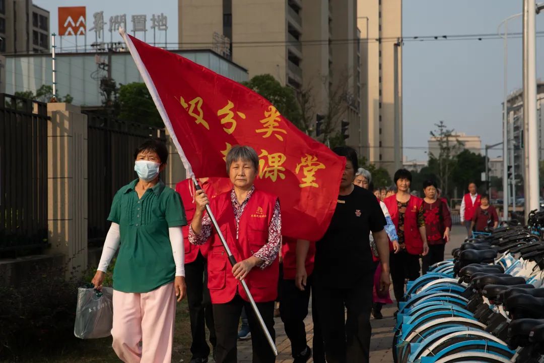 乐康苑小区是一个动拆迁小区,有着2800多户居民。小区建成初期,可谓是矛盾重重,人心散、环境乱,从村民到居民的转变让很多人都适应不了。为了更好的凝聚居民 ,2016年在奉浦街道第三社区居民委员会的支持下,小区改建了中心广场,修建了升旗台,竖起了不锈钢的旗杆,十二名居民自发成立了乐康苑小区“国旗班‘’。从此,鲜艳的五星红旗每天都会在乐康苑中升起来。六年来,国旗班的成员从最初的12名发展到了现在的60多名,小区居民对升旗仪式的态度也发生了巨大改变:从观望到理解,从理解到支持,从支持到参与。如今,每天都会有四五十位居民固定参加升旗仪式,在节假日尤其是每年的国庆节当天,居民们会把广场挤得满满当当,等待着这个神圣的时刻。