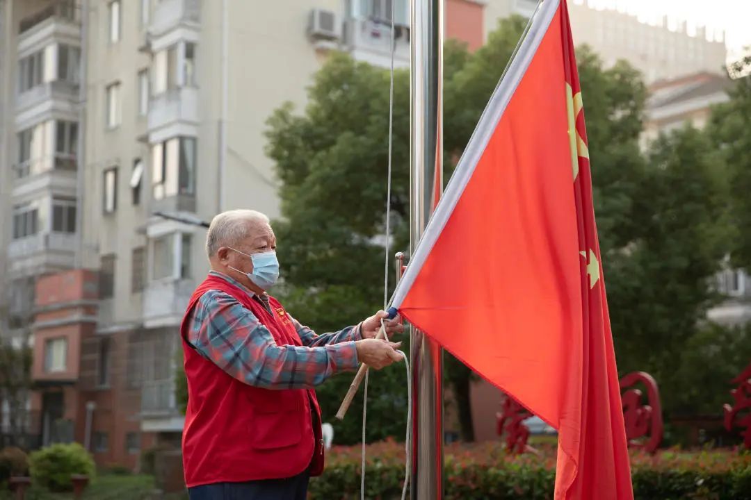 小区居民宋水芳看着升起的国旗,下意识挺直腰板、仰望国旗:“在这个特殊的日子里,看着庄严的五星红旗升起,唱唱雄壮的国歌,立刻就感受到了祖国的强大和民族的振兴,我们要永远跟着党,为国家、为小区多做一点贡献。”