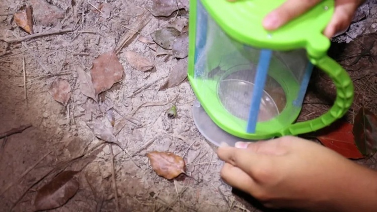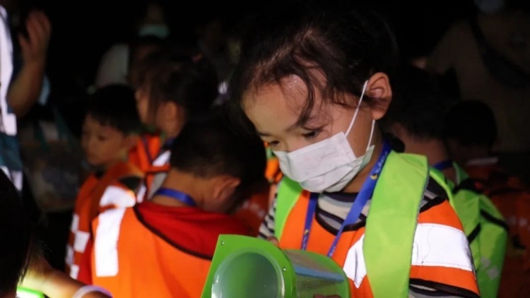 收获了各自亲手制作的甲虫标本后,孩子们迎来了最让他们兴奋的环节——带着小手电和捕虫盒,在老师的带领下走进夜色中的草坪、树林,去试着捕捉昆虫。阵阵虫鸣声,吸引着孩子探索的好奇;小手电射出的光线,在草丛、树木上来回游走,那是孩子们在寻找着观察对象。没多久,在工具和老师的帮助下,孩子们的捕虫盒里都有了收获。