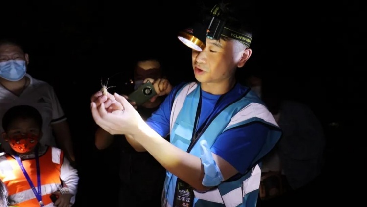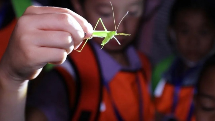 “蟋蟀、螽斯其实都是杂食性的,但是我们说的短额负蝗,蝗虫基本上都是素食主义者,它不会去食用荤腥……”老师的讲解,让孩子们对抓到的各种昆虫有了进一步的了解。而在一个小时的探索结束后,孩子们在老师的提示下,将这些“夜间精灵”都放归了丛林。