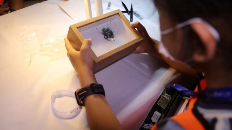 在随后的昆虫标本制作环节,孩子们亲自体验了如何把看似没有价值的昆虫尸体,变成具有科研意义的标本,并借此学习昆虫学家们严谨和科学的工作方式。“这个体验非常好,因为小朋友平时看到虫子只是远远地观察,今天可以自己动手,对虫子有直观的体验,而且也会对生命的价值有更多认识。”家长叶淑英带着5岁的孩子前来参加活动,对标本制作尤为感兴趣。