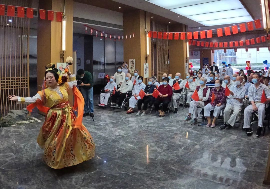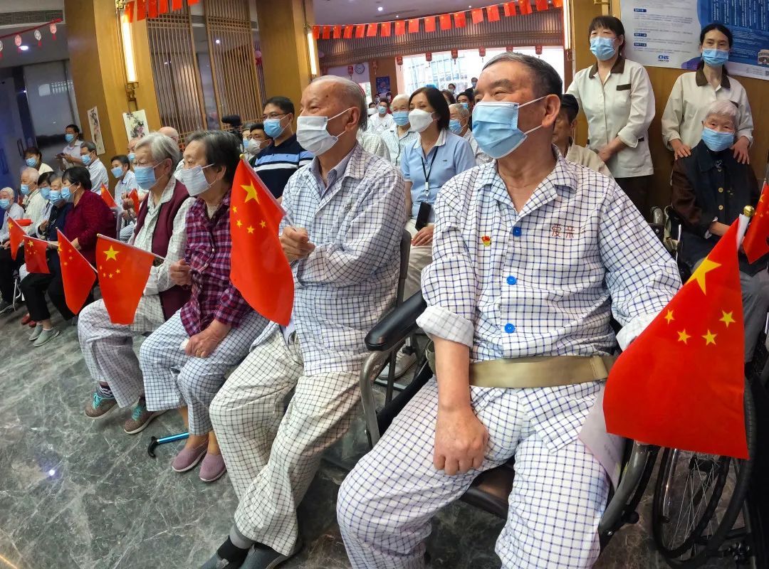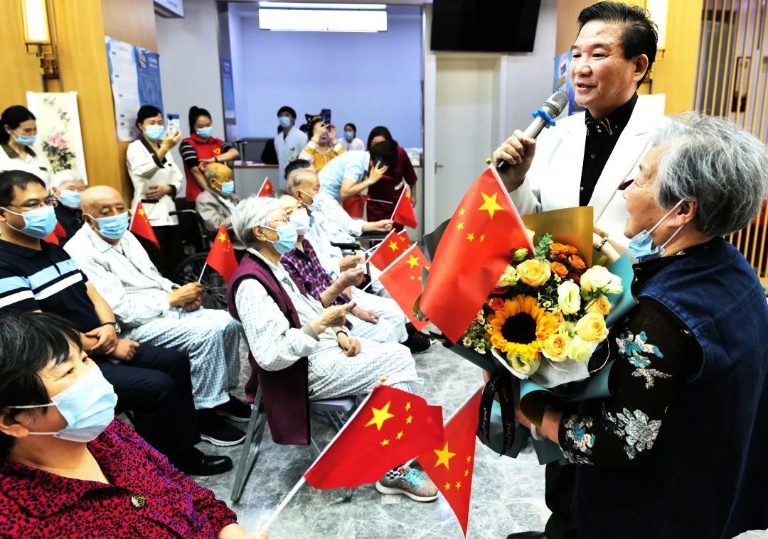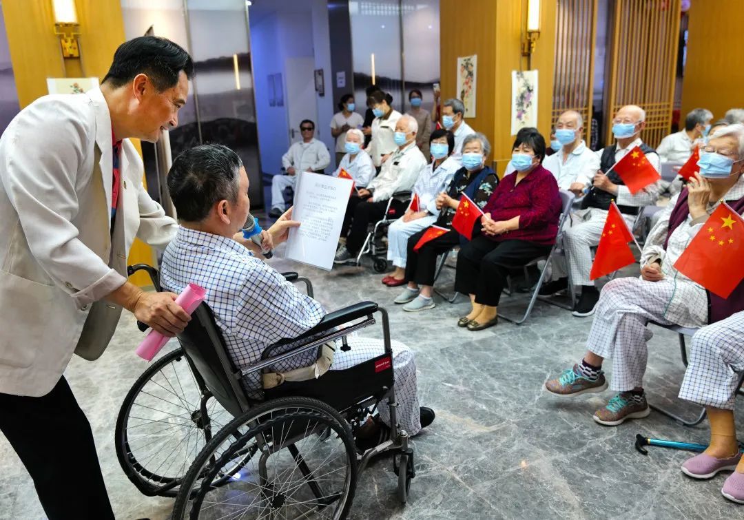 现场,护理院的工作人员带来自编自演的文艺演出,老人们手中挥舞着五星红旗,看得津津有味。全国十佳著名演员、上海电视台主持人孙启新及其团队也专程来到护理院慰问老人。