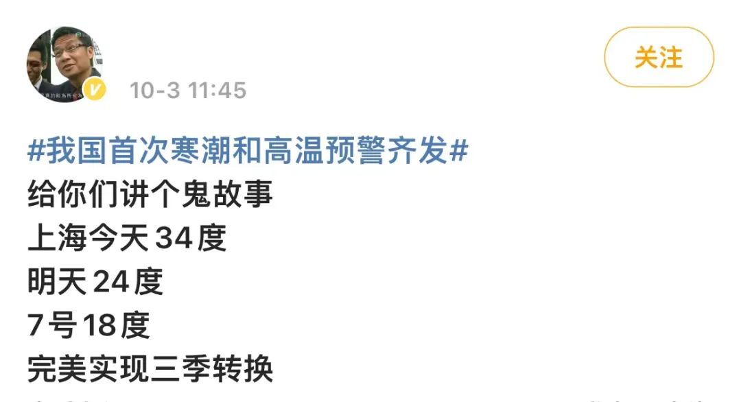 根据气象资料,今天还一举成为了上海史上最晚出现的高温日(≥35℃),在此之前,最晚出现的高温日是1947年9月27日。