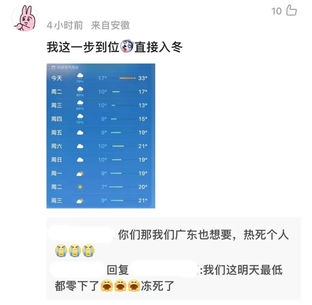 不过这已是高温最后的疯狂,目前寒潮前锋已经抵达黄淮一带,今年的高温一定会被终结,不过也意味着气温即将开启暴跌模式。