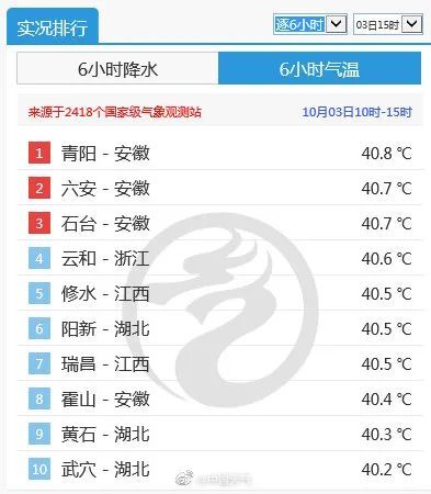 没有40℃进不了高温榜前十!敢相信吗,这是10月气温实况!榜单前十清一色40℃+,热到让人怀疑人生。