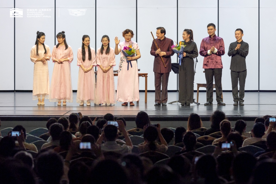此外,两位大师还分别与“笛声赋”竹笛室内乐团与“泠然音生”古琴乐团带来了《幽兰逢春》《西湖春晓》 《杏坛》等多首重奏曲目,两位与乐团娴熟的配合,发挥了音乐的想象性,曲毕全场观众给予热烈的掌声。