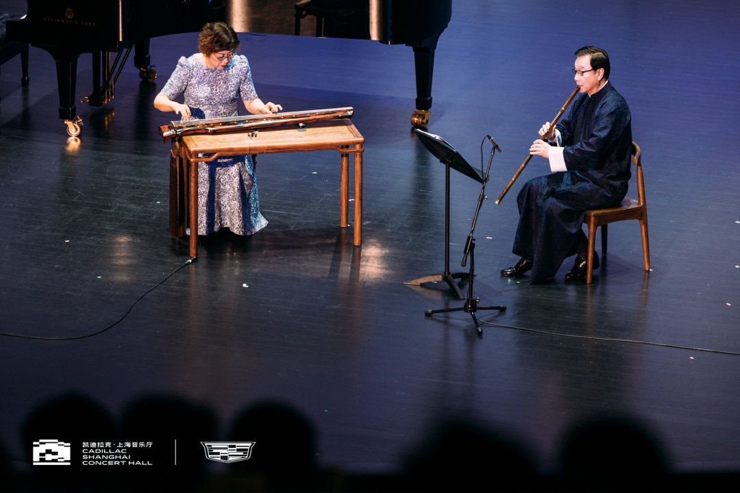 音乐会最后,两位国乐大师带来的琴箫合奏《鸥鹭忘机》首演,箫声与琴音起转空灵之处,流转出天人合一,物我两忘之情怀,以淡泊悠远之音追忆前人,凝望未来。