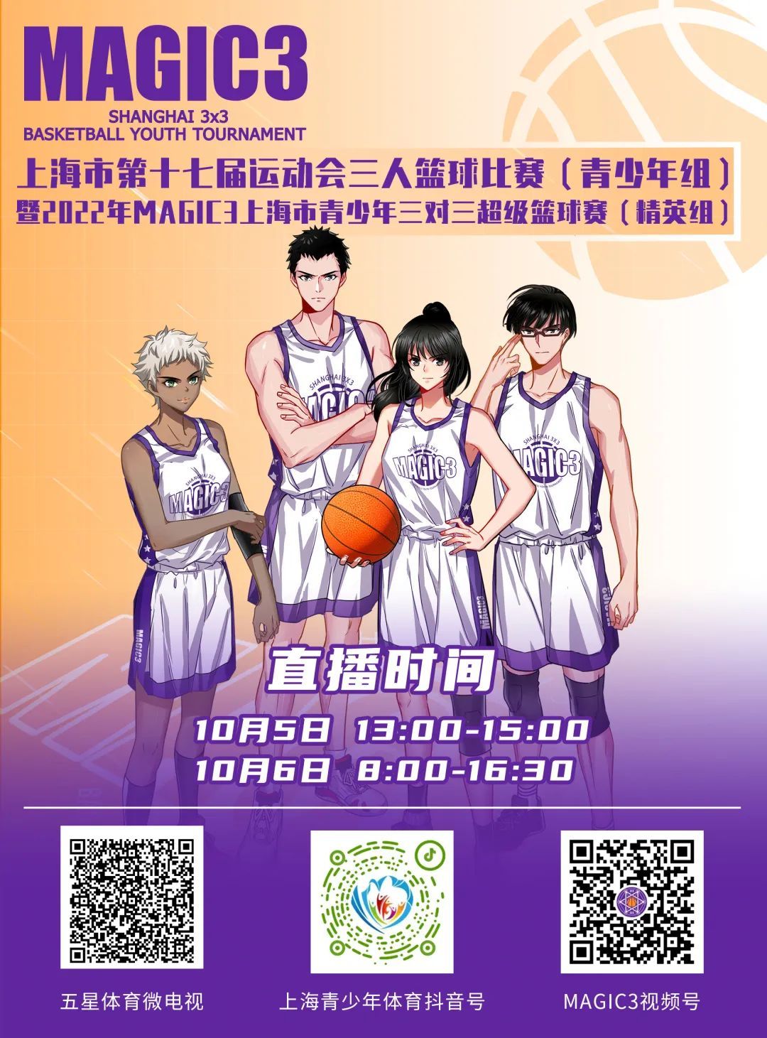 扫描下方对应二维码,即可获取上海市第十七届运动会三人篮球比赛(青少年组)暨2022年MAGIC3上海市青少年三对三超级篮球赛(精英组)直播观看入口!