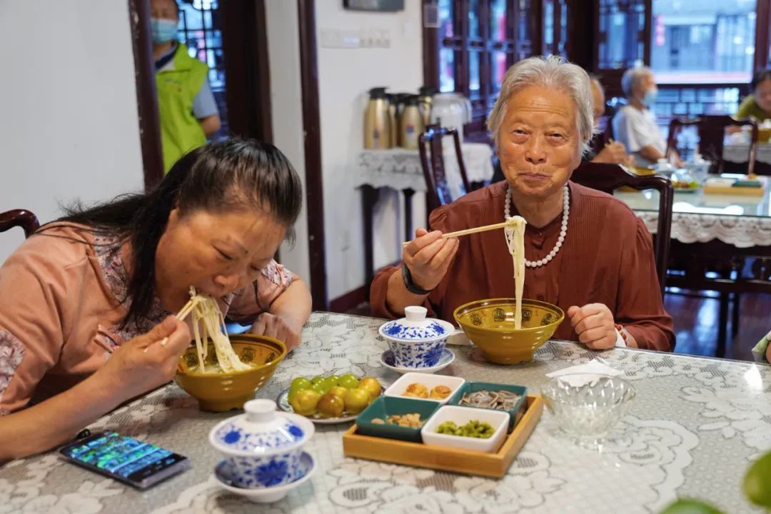 “茶楼想得很周到,早上给我们准备了面条作为早饭,还准备了茶点和重阳糕,临走还给我们打包了一整份重阳糕带走。”许阿婆是第一位来到茶楼的老者,平日里喜爱热闹,自从接到邀请便满心期待这一天的到来。