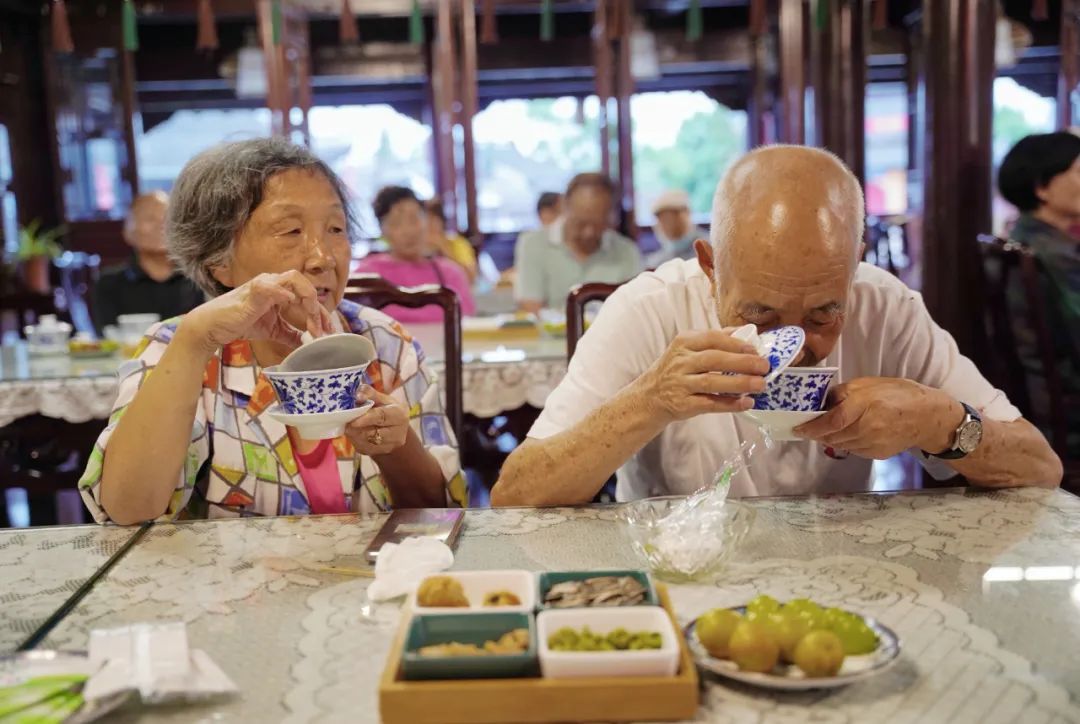 阿婆茶楼精心给每位老人准备了早饭,早餐后,志愿者们又给老人们奉茶敬茶,老人们在这优美的环境中喝茶、叙情,幸福之情溢于言表。