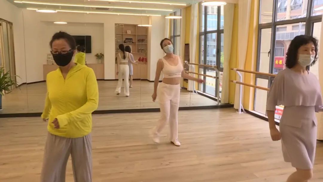 在另一边的舞蹈室内,居民何垚钧身着运动装,正领着两名阿姨跳舞。虽然年届六十,但何阿姨依然步履轻盈。平日里,她不仅带大家学跳舞、练形体,还会传授美妆、护肤的技巧。