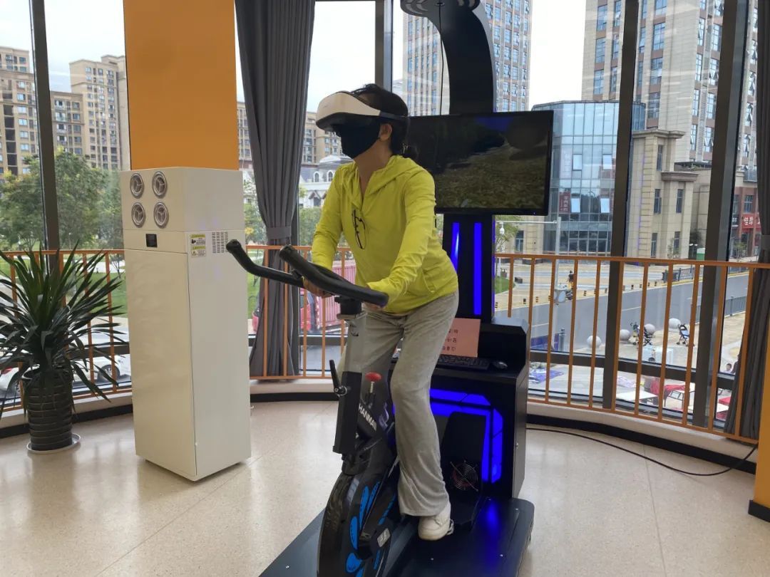 在安亭汽车城社区我嘉·邻里中心的“动感VR室”内,欢声笑语此起彼伏。驾驶模拟赛车的紧张感和拟真座椅带来的震动反馈,让这些“老车手”们玩得十分尽兴。一旁的VR自行车也深受追捧,一位带着VR眼镜的阿姨沉浸其中,只见她骑行在虚拟场景内,各种惊险的关卡让她发出阵阵惊呼。