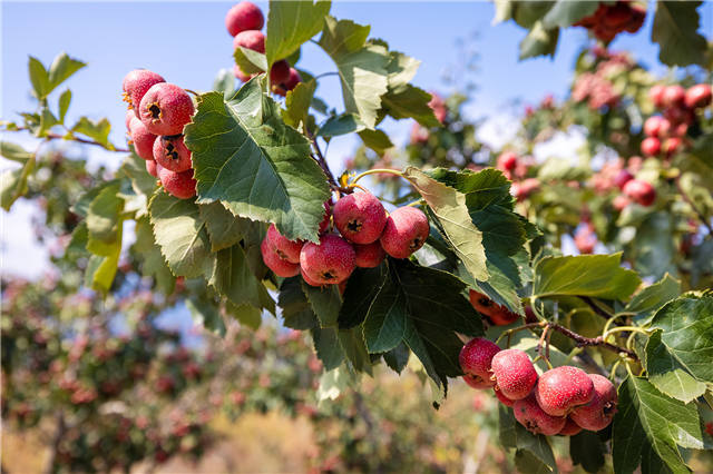 济南南山天麻岭脚下川道村的山楂熟了,漫山遍野红彤彤一片。村支书范立泉说,村里种植山楂已有300多年的历史,山楂树也是村里人的“摇钱树”,今年全村山楂达到1000亩,可产山楂200万斤。(大众日报客户端记者 杨润勤 报道 摄影 张宝贤)