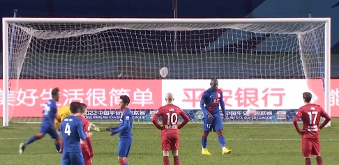 48分14秒,巴索戈右路底线发起进攻,起脚传中。防守队员在拦截时失误,倒地后,手扑到足球。上海申花获得点球,巴索戈轻松破门。上海申花1:0河南队。
