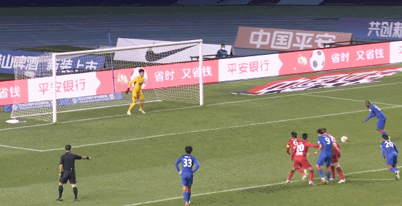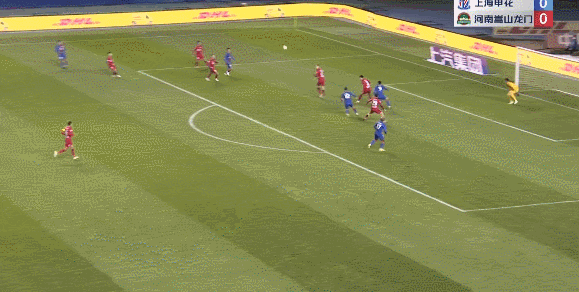 57分58秒,上海申花发起长传反击,于汉超越过门将,一脚射门被防守队员破坏。后续争抢中,河南队队员将球解围。