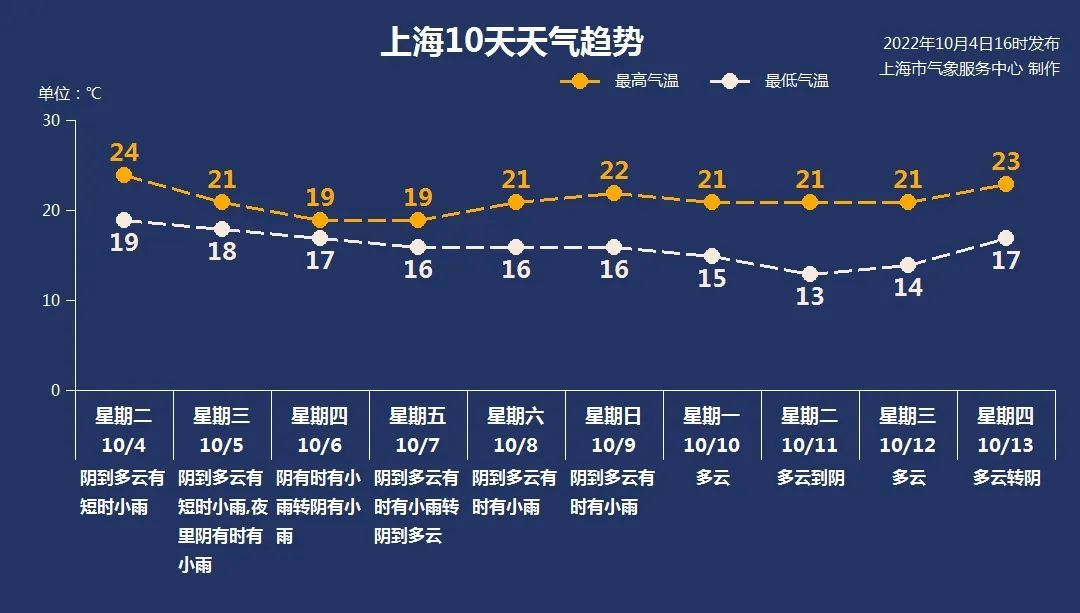 市区白天昨天最高仅有24℃,猛降超10℃。今天(10月5日)仍然云多阴沉伴细雨,风力有所减小,北到东北风4~5级,全天气温还会再降低一些,18℃~21℃之间。