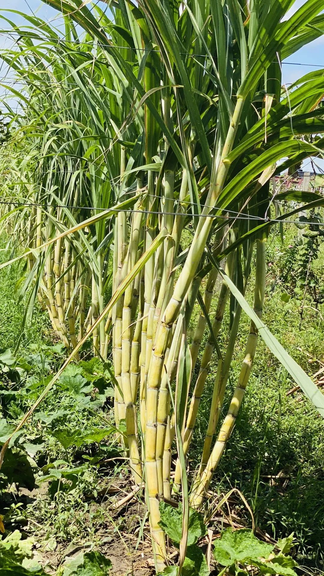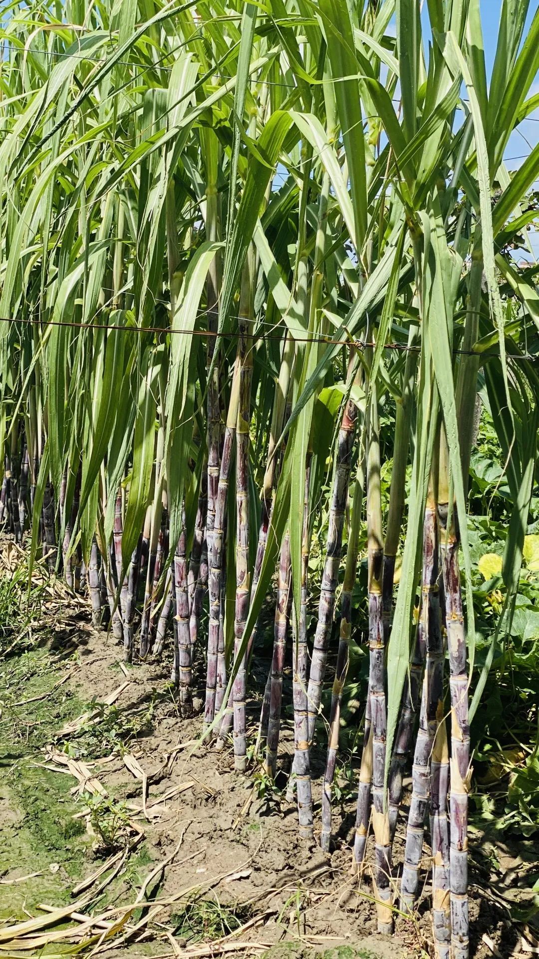 菊园百果园种植有红皮和青皮两种甘蔗,面积约为1亩。甘蔗汁水多、味道甜,红皮甘蔗口感较软,青皮甘蔗口感较硬。此外,园区还提供免费榨汁服务,一根甘蔗可以出汁500毫升左右。目前,甘蔗已陆续上市,预计10月中旬迎来最佳赏味期。