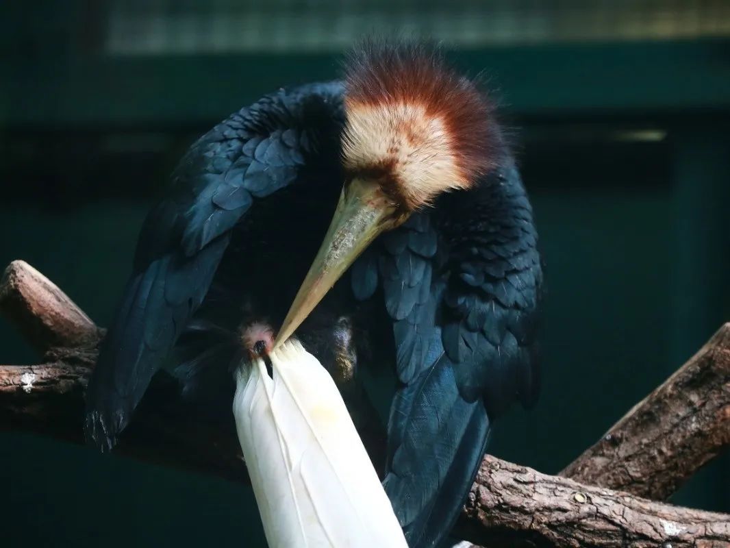 所以,现在大家只能猜猜犀鸟宝宝是男孩还是女孩,两年后再来看它,它的喉囊会是什么色儿的呢?(不过铲屎官不久就会知道的...DNA检测技术...别告诉它。)