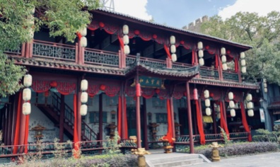 接下来进入影视城弘孝客栈,在这里可以体验经典电视剧《武林外传》中老板娘、店小二的片段演绎,体验剧组生活,人人都能当主角,专业摄影师带你体验穿越之旅,还可以自导自演。