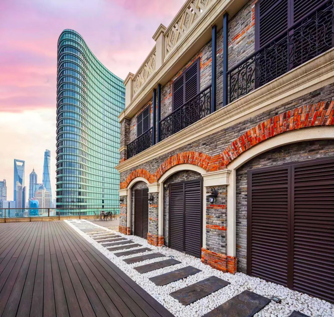 在位于双狮汇大厦的露台上,兼有东方神韵和西方风情的“石库门”昂然屹立,东望浦西第一高楼,西临北外滩世界会客厅,既可饱览浦江黄金三角美景,又与外滩的万国建筑、对岸的陆家嘴“三件套”相映成趣,在这里实现了东方与西方文化对话,古典与现代激荡交融,别具一番风情。