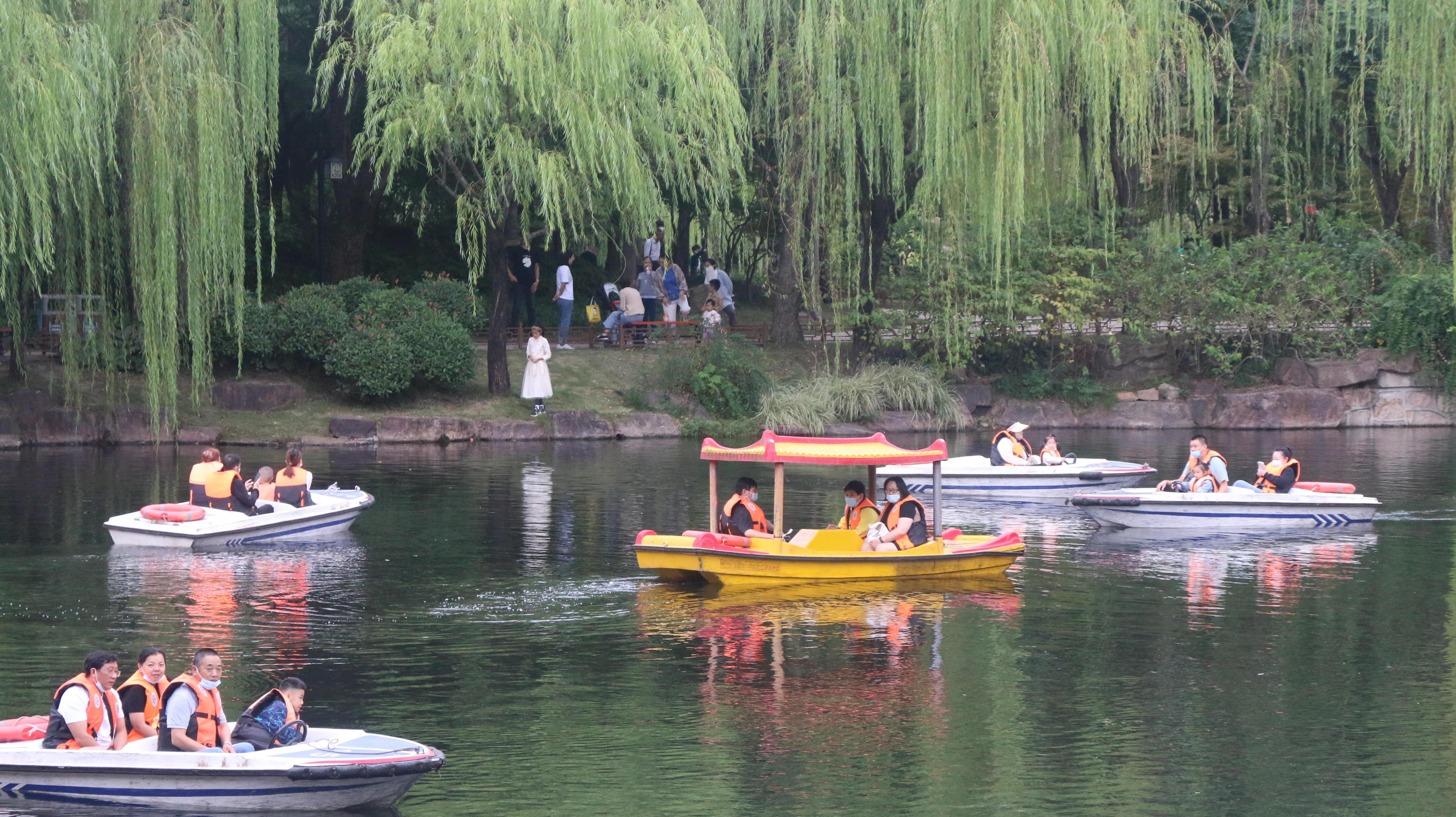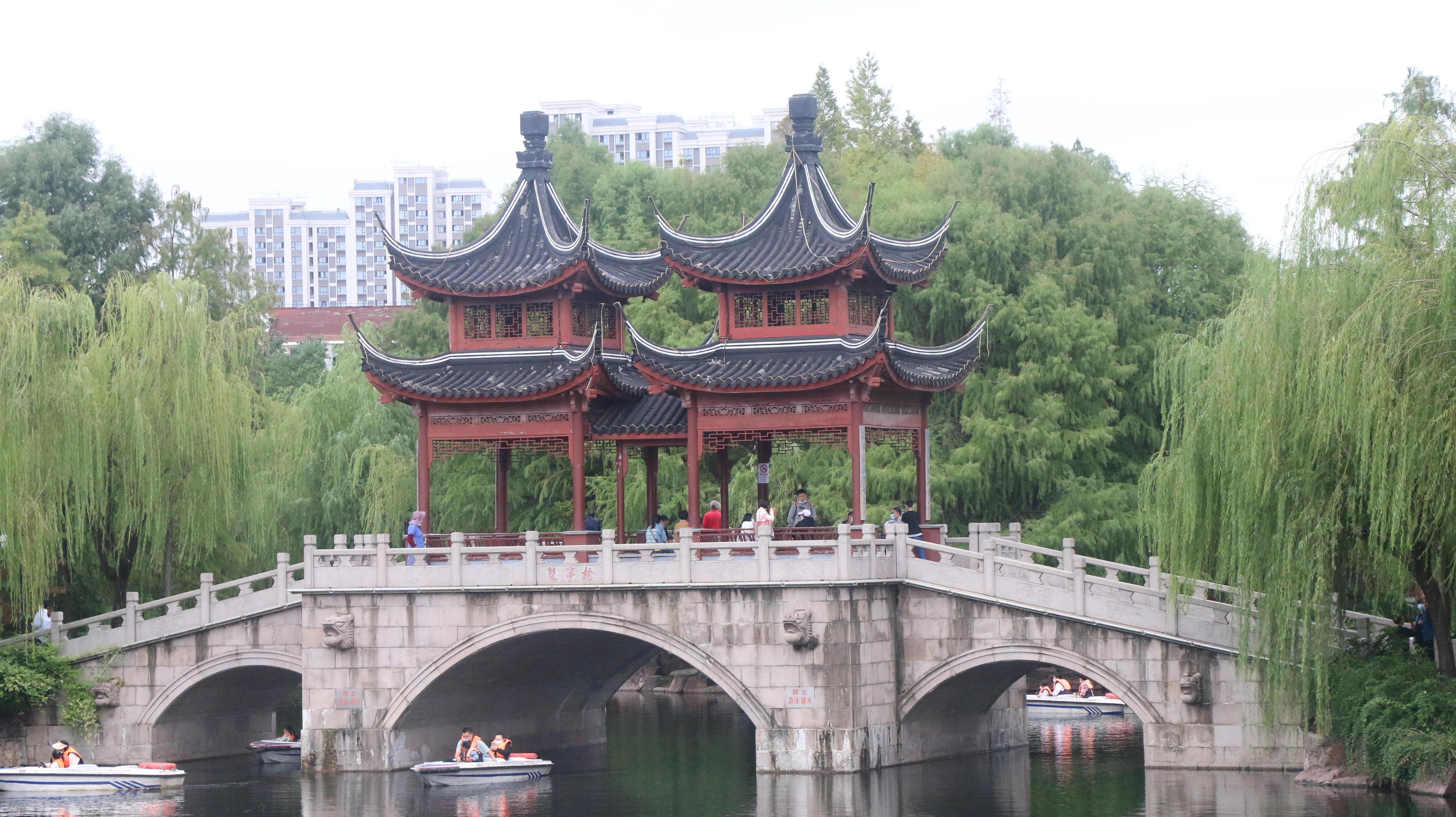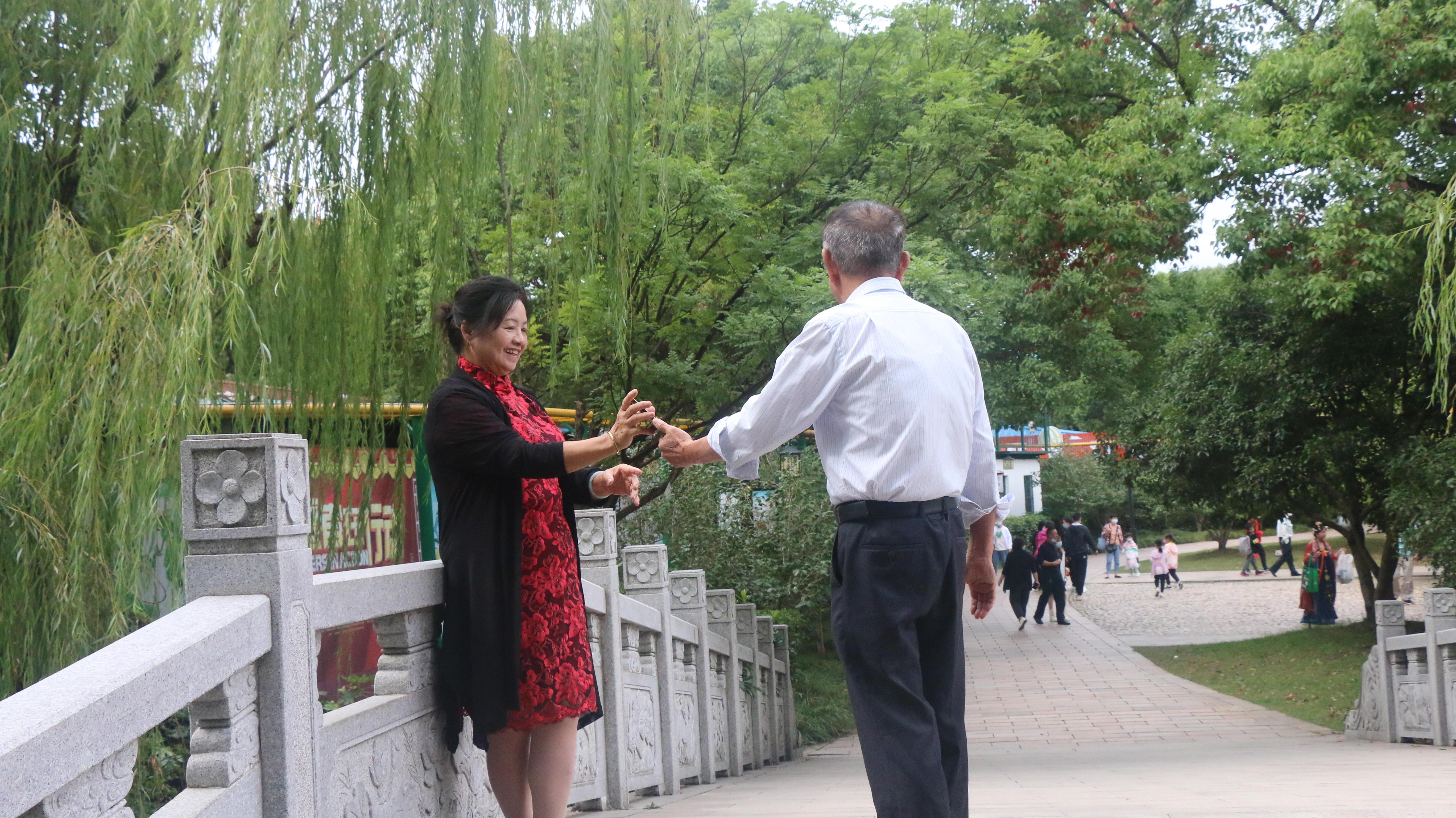 在这座古典的公园内,市民们悠闲地徜徉在柳树河岸之间,一些穿汉服、戴发簪的青年们,让传统文化之美与古风公园融为一体。有的市民在锻炼身体,有的奏吹乐器,有的在河中游船,也有的带着孩子体验游乐设施的乐趣。“我是第一次来,这里有很多古桥、亭子,我们的汉服跟这里的环境很契合,就做了个造型,和朋友一起拍摄一下。”一位来自浦东新区的汉服爱好者说道。