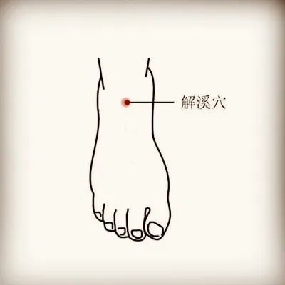 此穴在脚背与小腿交界的地方,横纹中央的凹陷之处,平时可以刺激解溪穴来帮助改善脑部气血不足的情况,在按摩时,可以用大拇指按压此穴,逐渐慢慢用力,再慢慢松开,此一压一松为一个循环,这样重复按摩30个循环。