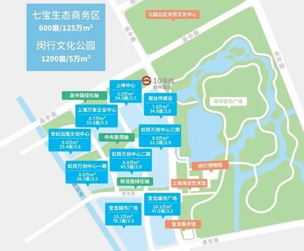 作为上海市现代服务业集聚区之一,七宝生态商务区经过10多年的发展,高楼拔地而起,优质企业纷纷抢滩落户,有了总部集聚的国际生态园区的雏形。随着更多项目的建设和落地,文化荟聚的全球艺术高地更是指日可待。