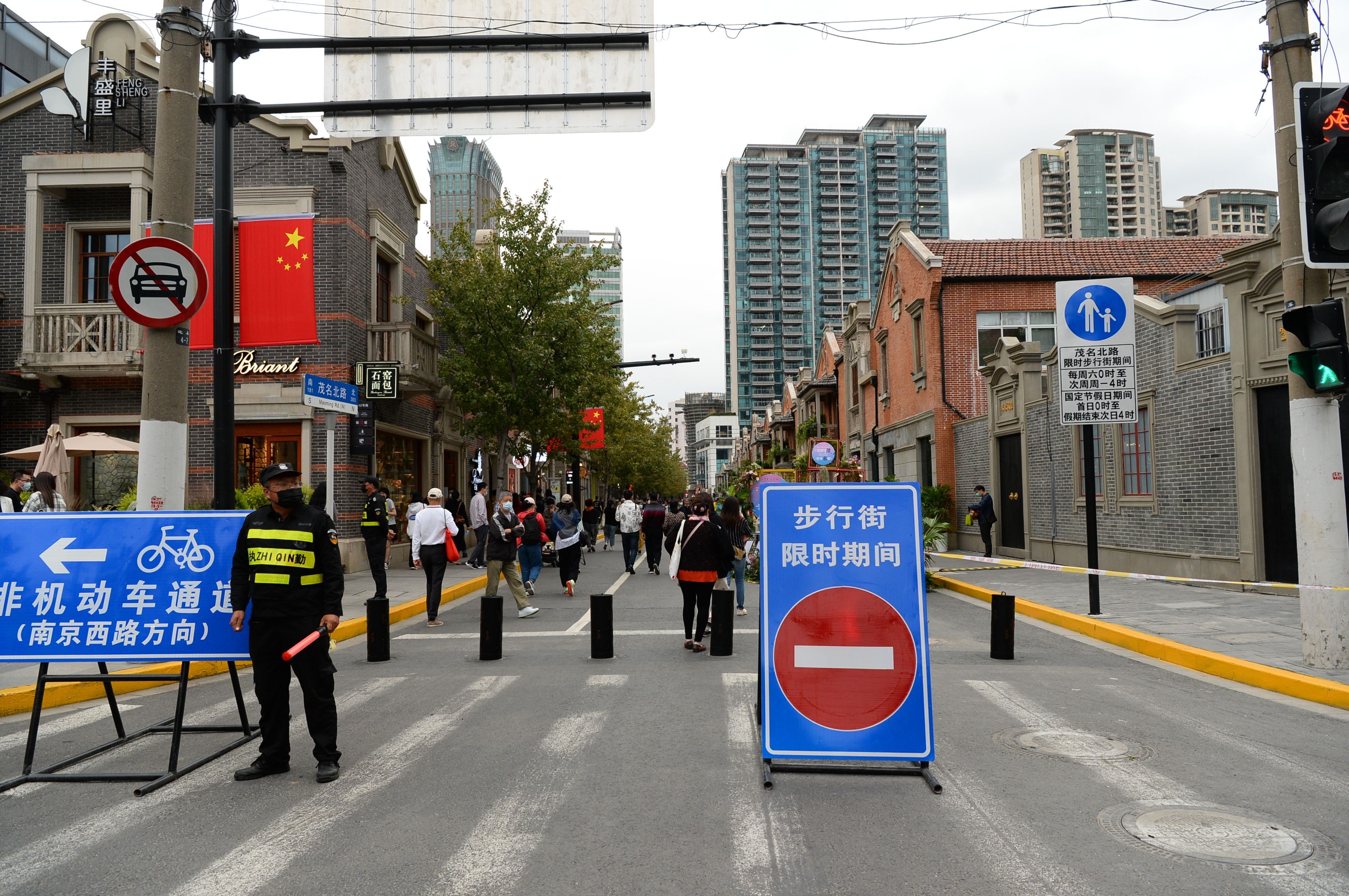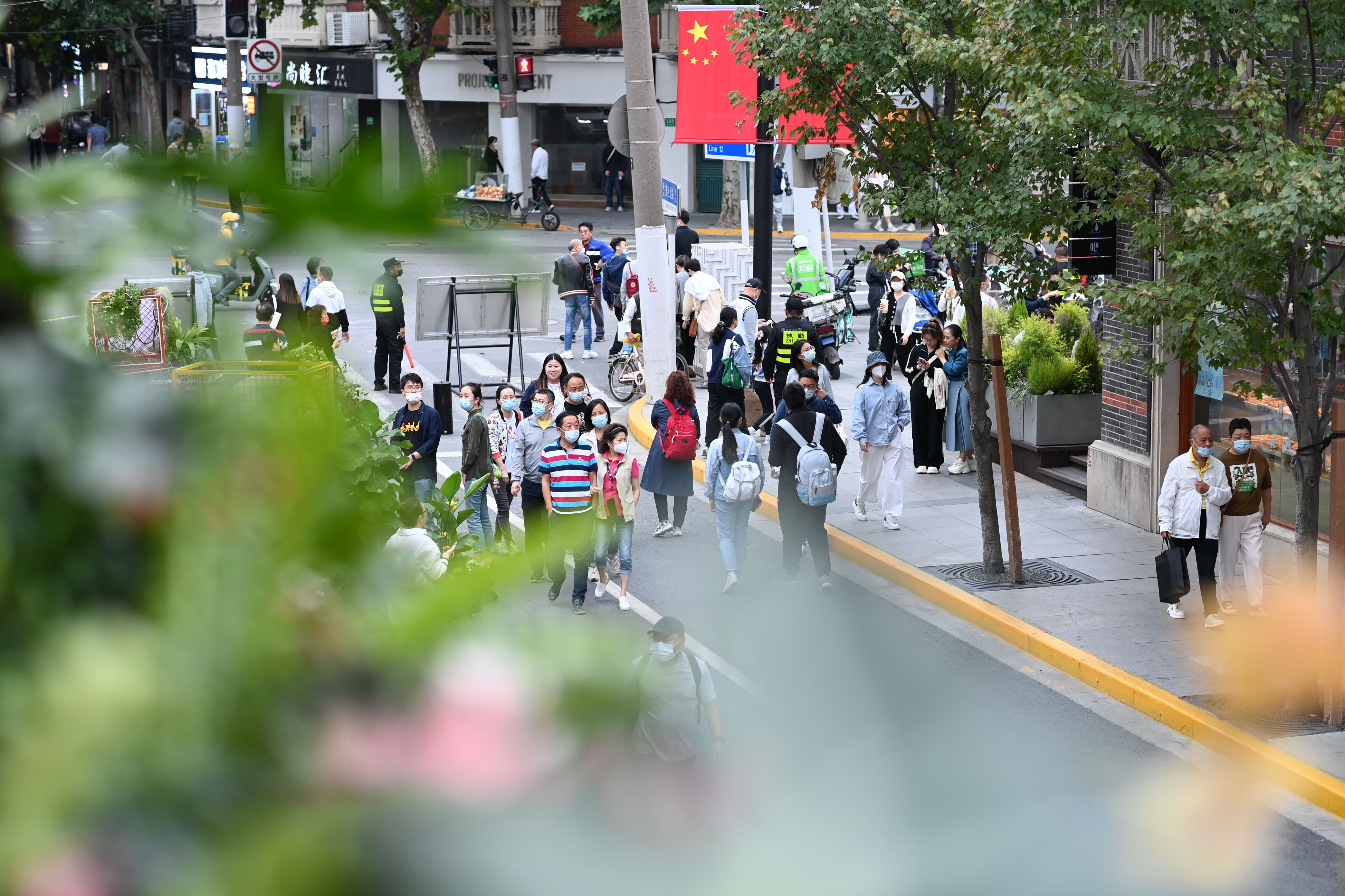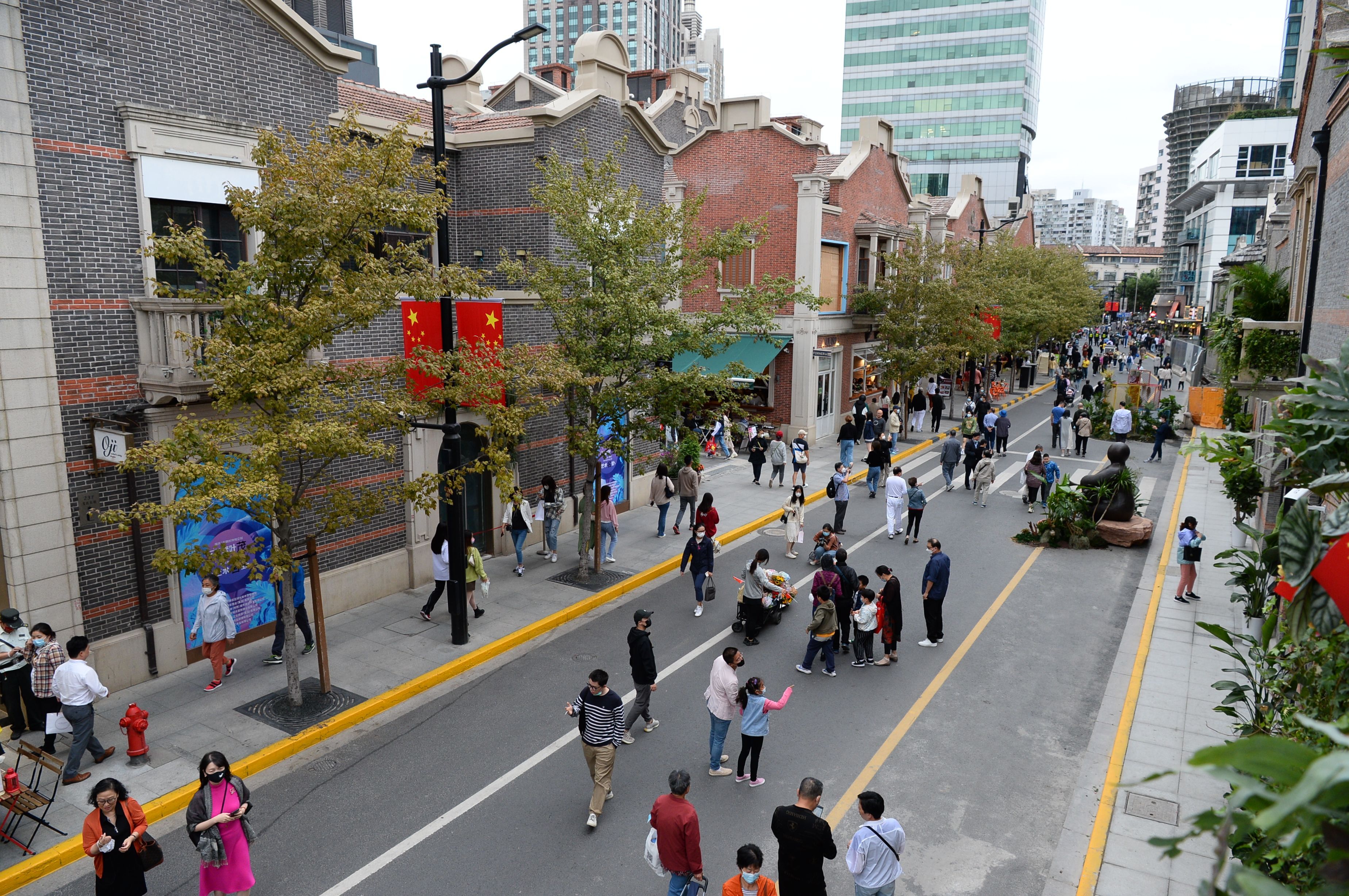 △今年九月下旬,静安区茂名北路限时步行街正式亮相。这个国庆假期,是它陪伴市民游客度过的第一个长假。环境好,人气旺,是人们来这里最直观的感受。