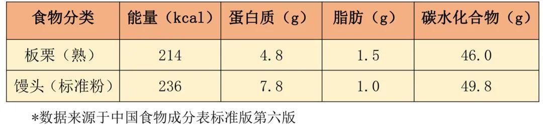从营养学角度来说,板栗的营养更类似于米面等主食,每100克板栗中的碳水化合物含量接近馒头。