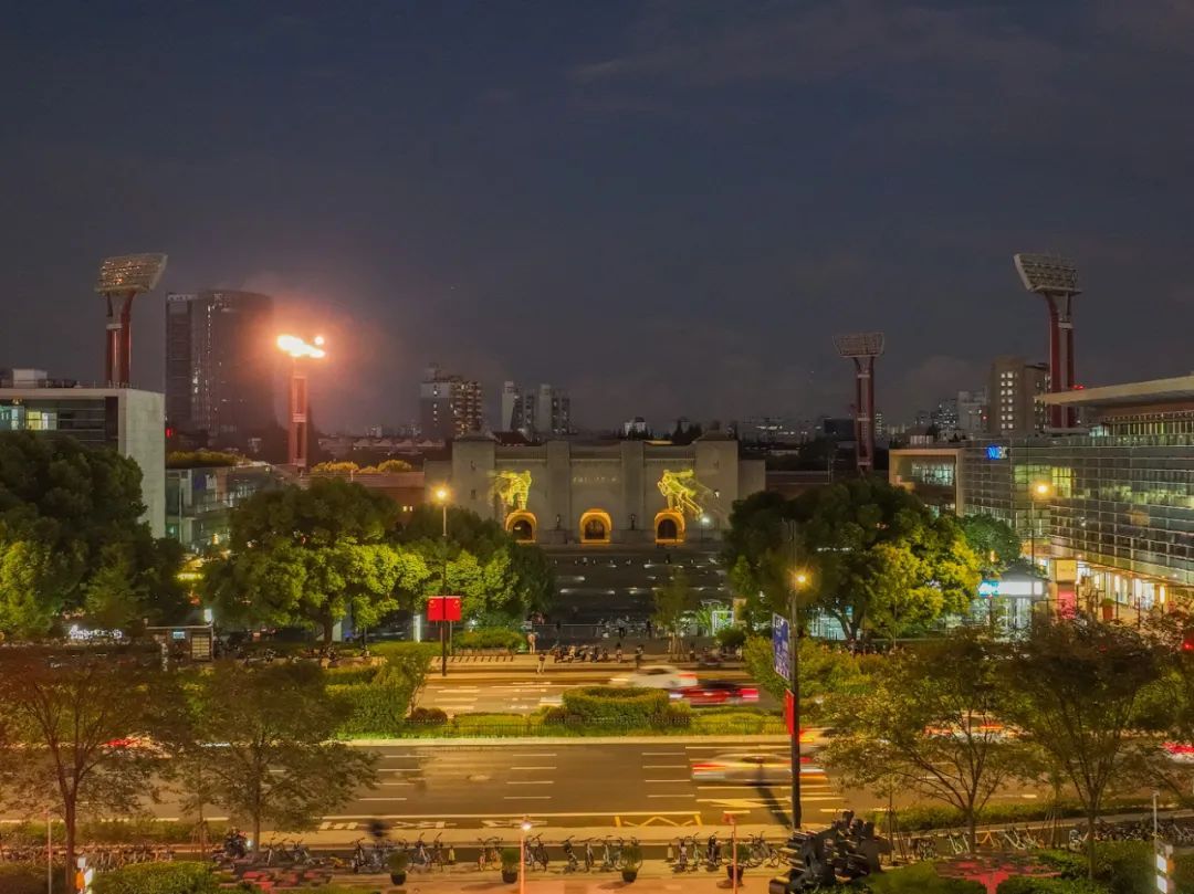 江湾体育场,承载着远东第一体育场的记忆。在这里,彷佛可以听到百年的激情和呐喊。当灯光晕染上厚重的砖石墙面,这座沉默端庄的美丽建筑,彷佛从历史的记忆中醒来,闪过无数运动的身姿,回望红色征程与光辉之路;平时它温柔又神秘,好似一座漂入海底的梦幻城堡,或是飞向梵高星空的一场梦。