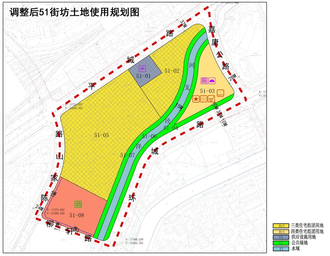 本次涉及调整的51街坊具体范围:北至平城路、南至环城路、西至陈家山路-柳轩路、东至嘉唐公路,用地面积12.48公顷。