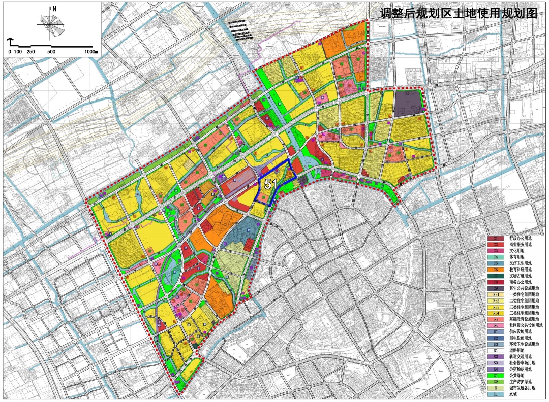 51-03地块:用地性质由文化用地(C3)调整为四类住宅组团用地(Rr4),容积率由2.0调整为2.5,建筑高度由80米调整为70米,住宅套数增加600套,按照相关准则配置配套设施,根据用地性质的调整取消公共停车位。