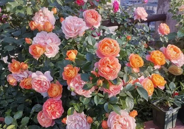 月季花被称为花中皇后,又称“月月红”,是常绿、半常绿低矮灌木,四季开花。“果汁阳台”作为月季花的新品种,植株形态优美,一株多色、抗病性强,花色会根据季节、温度、光照等变化而变化,每朵花开放时间不同,会出现一树多色花的盛况,甚是迷人,此外对花友新手也十分友好,堪称盆栽花界的"yyds"。