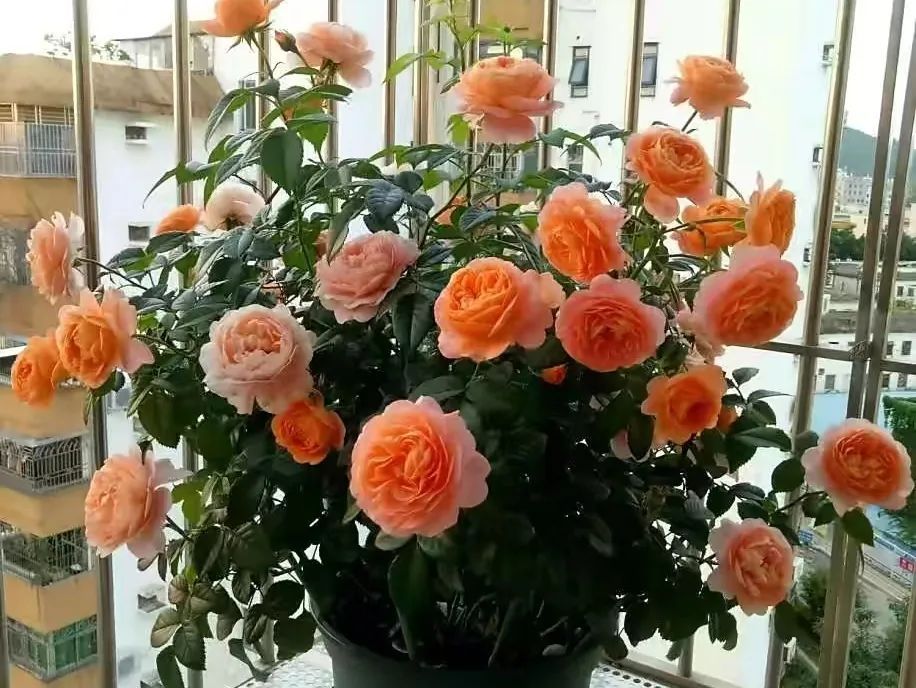 “果汁阳台”喜强阳,日常养护要将盆栽搬到室内光线最好的南阳台,多晒太阳有利于月季生长,多多开花。