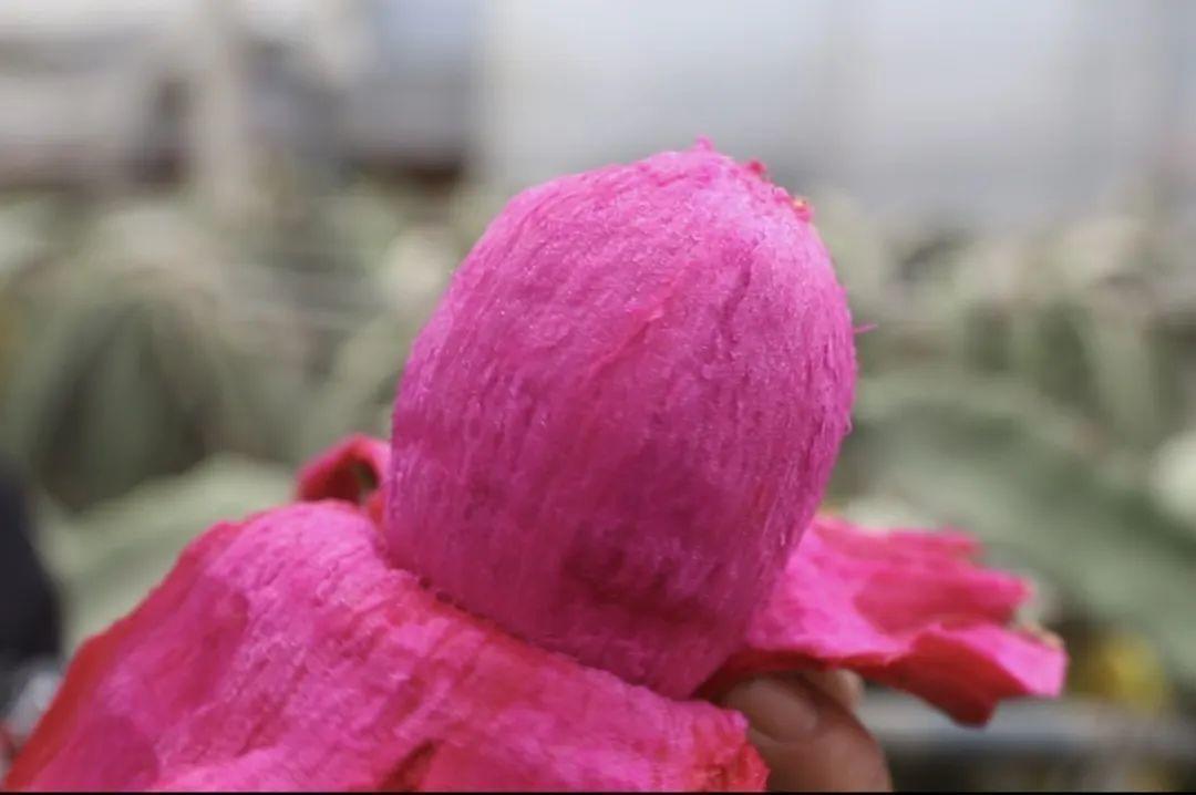 摘下果实,剥开外衣,大口咬下,清甜多汁,随着火龙果红色的汁液被定格在镜头中,秋季的燥热似乎也随着果皮被剥离开来。前来采摘火龙果的沈奶奶说:“今年花期雨水较少,非常适合火龙果生长,长出的火龙果不仅个头大,还皮薄肉甜。”