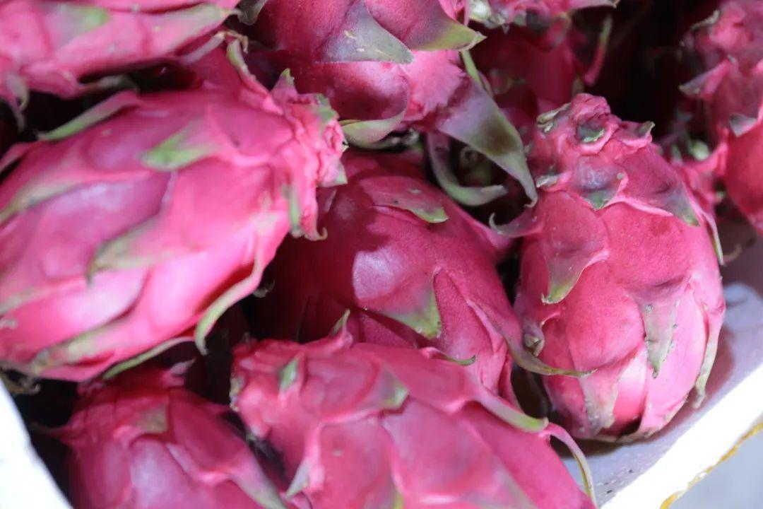火龙果的果肉里镶嵌着千万颗极似芝麻的种子,因此也叫芝麻果;火龙果的茎叶与仙人掌极其相似,所以又被赠“仙人果”的美称。随着白马塘村上海依岚葡萄合作社火龙果的陆续成熟,满园的绿鞭枝条上挂满了红彤彤、圆滚滚、沉甸甸的果实,又似乎传递出淡淡的清香,发出热情的邀请,引诱着不少慕名而来采摘的村民。