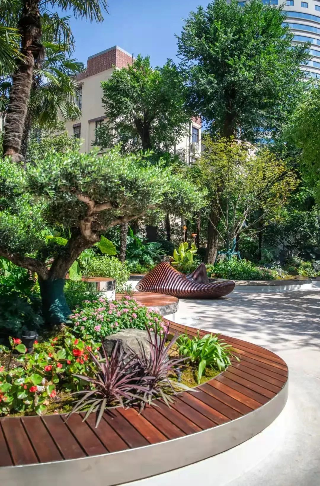 走过宛平路附近的市民近日惊喜地发现平日常走的绿地被打造成为了特色的小花园,原先的榆树被保留了下来,增加了树池座椅和赏游汀步,可以进行短暂休憩、观景,花坛里还增加了开花植物和花境组团,打破单一沉闷的植物空间,营造唯美花镜。同样,居住在天平路245号附近的居民也即将拥有自己的“小花园”。“家门口”的绿地植物进行了调整,花园里还增设了特色水磨石一体座凳、主题标识,特色花镜、景观灯光,以“衡复双城故事”为整体设计理念,一个有生活、便疏散、合尺度的口袋公园即将呈现。