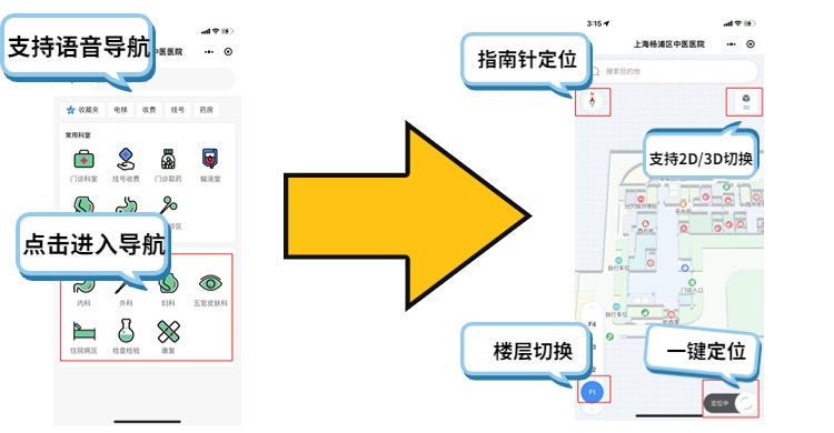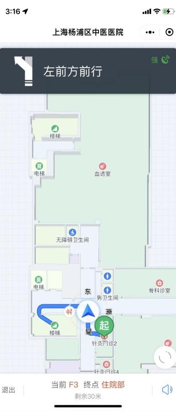 不知道要找的科室在哪里,不了解看病的流程,只能去咨询台询问……为了提升患者的就诊体验,杨浦区中医医院借助互联网+医疗技术,精心打造了一套智能导航系统,帮助患者在院内获得动态连续的位置指引,顺利找到目的地。