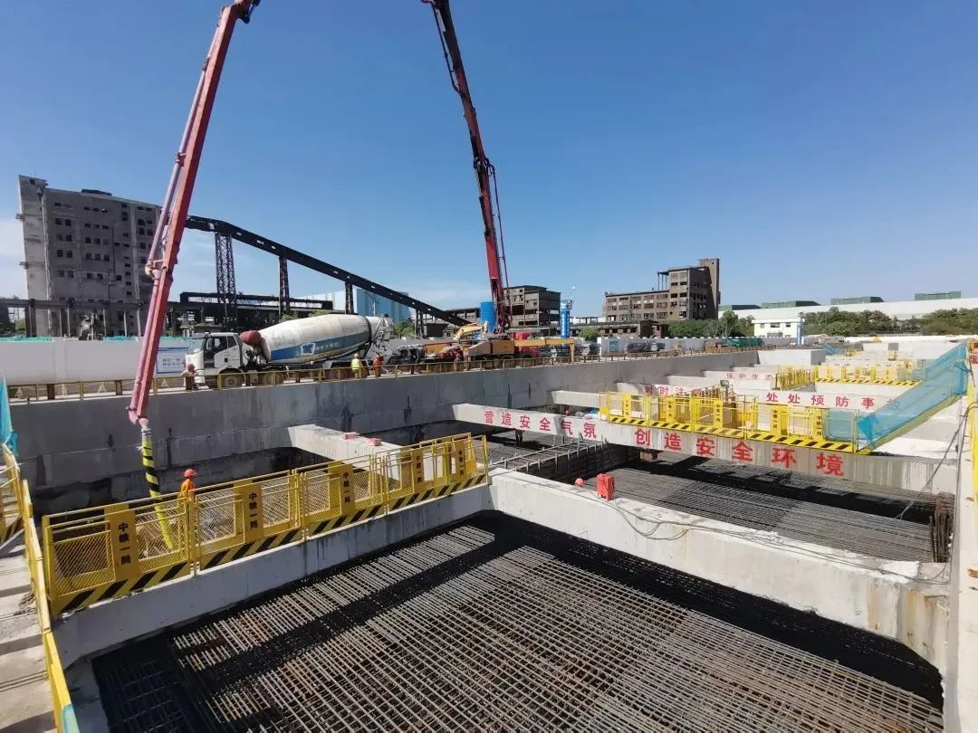 近日,18号线二期长江西路站主体最后一块顶板浇筑完成,成为18号线二期首座实现主体结构封顶的车站,为后续附属结构和盾构推进施工创造了有利条件。