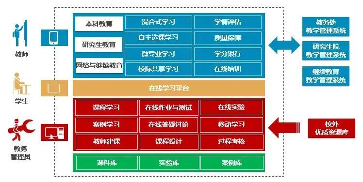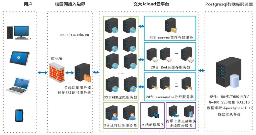 在上海交通大学,学校基于开源系统自行建设了网络学习空间,并部署在学校私有云平台jCloud上。网络学习空间与教务、人事、公共教学楼监控等系统打通,可自动同步用户、课程、排课、选课等数据,满足课前、课中、课后三大环节的教学需求。2021-2022学年,平台已累计发布课程8339门,页面总访问量达7011万页次。