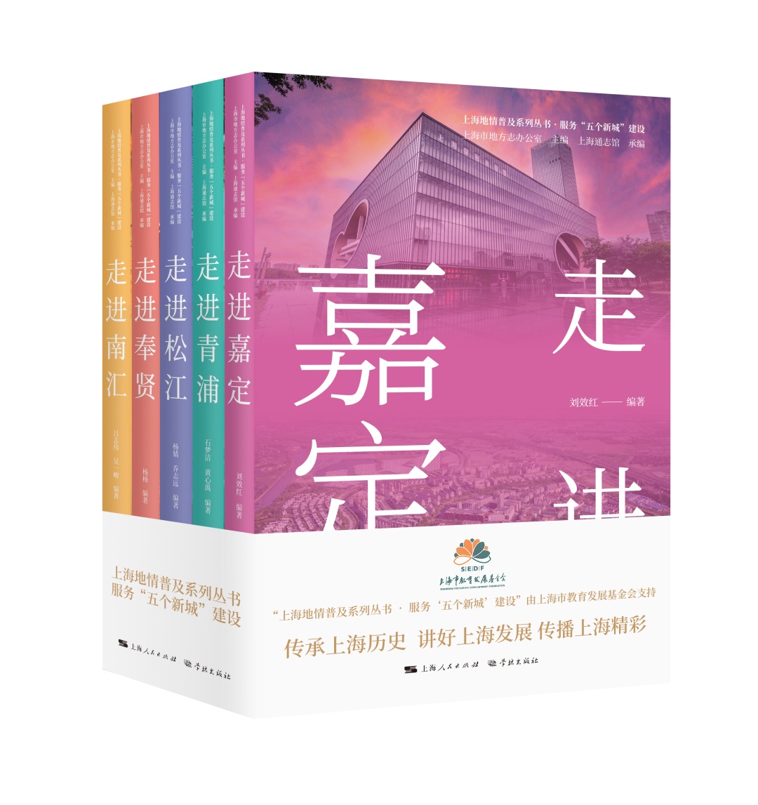 由上海市地方志办公室主编、上海通志馆承编的“上海地情普及系列丛书·服务‘五个新城’建设”于近日推出。聚焦嘉定、青浦、松江、奉贤和浦东新区,服务上海“五个新城”发展与建设,包括《走进嘉定》《走进青浦》《走进松江》《走进奉贤》《走进南汇》五种,从历史、文化、地理、人物等角度勾勒当地社会图景,凸显当地人文精神和时代风貌,展现新城宜居、创新的区域特质。