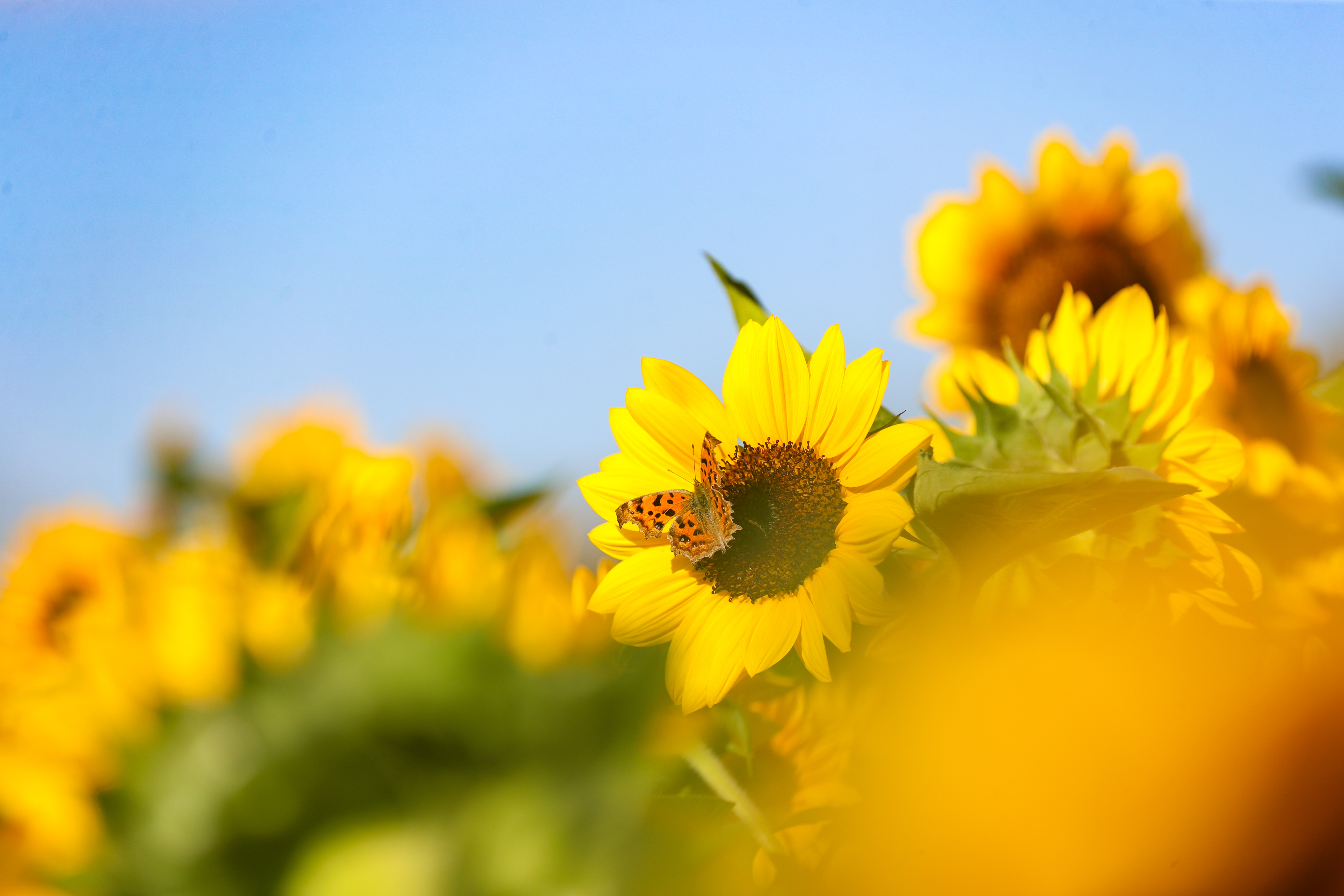 大片向日葵近日竞相绽放,放眼望去呈现出金色花海一般。时至金秋,上海辰山植物园内靠近3号门这边风景独好,金灿灿的向日葵在阳光下与蓝天白云相映成趣,宛若一幅秋日的油画。