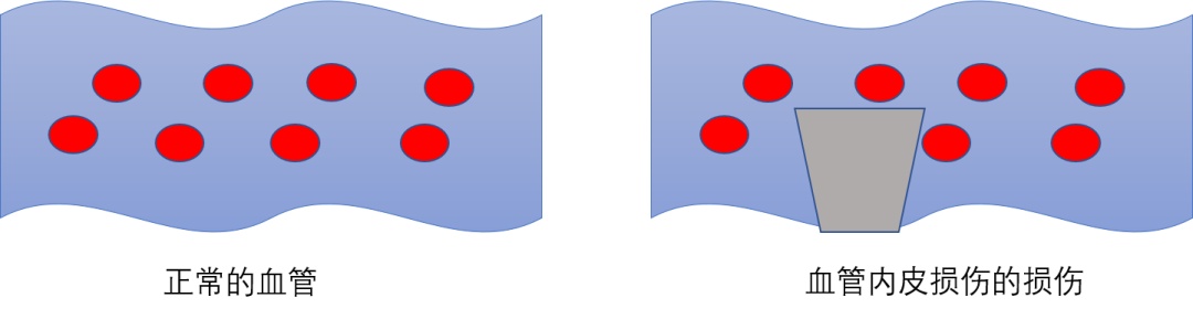 ① 血管内皮细胞的损伤:完整的血管内皮细胞相当于河道两侧的河墙,正常情况下有利于维持血流通畅,内皮损伤相当于河道墙壁被冲出一个洞,为了加固墙壁进行填石修补,修补后的墙壁相比原来凸了出来,这就相当于河道变窄了。此时凸出来的部分就是构成血栓的部分。