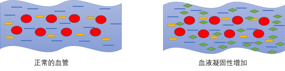 ③ 血液凝固性增加:类似河道中的水夹杂了大量的泥沙,河水变浑浊了,泥沙太多超过河水的承载力,便会沉积在河底。这些沉积下来的“泥沙”在血管中就是血栓。