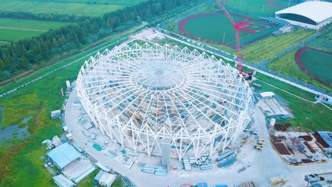 近日,位于崇明的上海自行车馆项目主要单体的钢结构张拉结束,场馆整体钢结构外框架施工完成。场馆按照承办奥运会、世锦赛等国际顶级赛事标准和要求建设,是上海市重大工程项目,建成后将成为上海提升城市影响力和建设全球著名体育城市的重要一环。