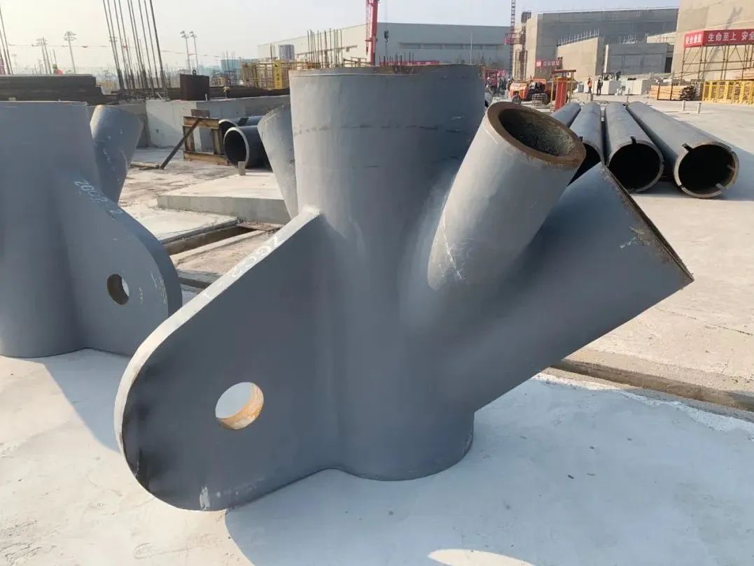 屋面主梁为单曲面箱型结构,内圈圈桁架拉索节点复杂,为多杆件相贯节点,成型难度高。为确保焊接质量达标,同时又达到美观的效果,项目建设指挥部进行了专门的技术方案优化,将柱顶索夹节点与外圈七杆件相贯节点深化为铸钢节点,顺利解决了钢管链接处焊缝叠加带来的质量隐患。