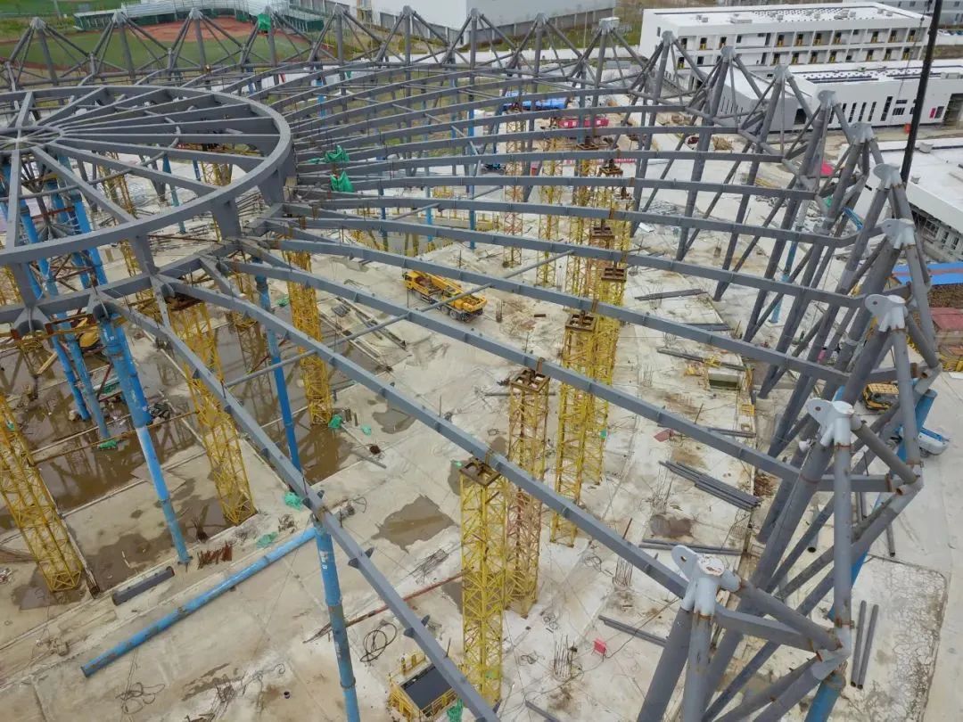 由于自行车馆整体跨度大,如果按传统建筑由内而外的施工流程先完成土建施工,会大大提升后续钢结构吊装施工难度。
