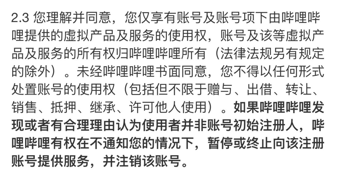 图片来源:哔哩哔哩用户协议