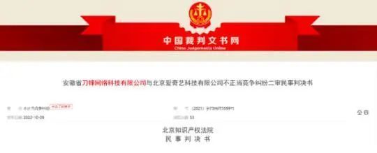 一审判决后,刀锋公司提出上诉,北京知识产权法院二审驳回起诉,维持原判。