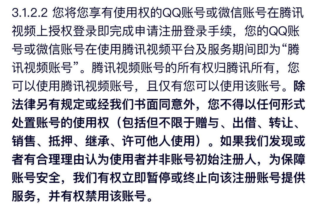 图片来源:腾讯视频用户协议
